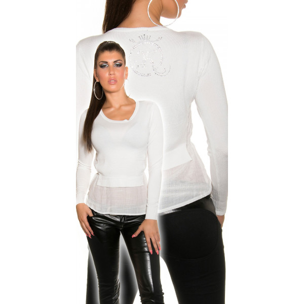 Camisola com abertura na frente 85% Viscose e 25% Poliamida
